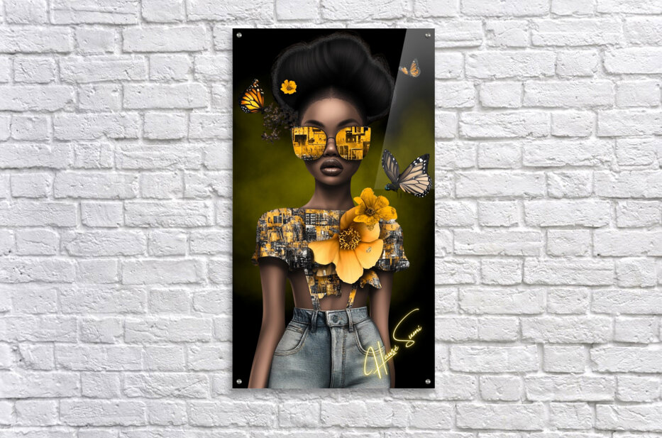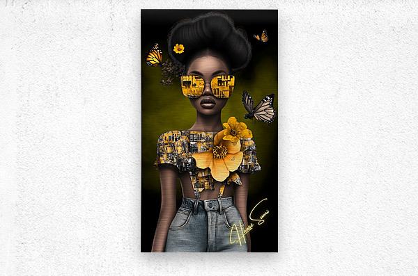 This city queen wears her domain on her sleeve—literally. The urban print on her outfit mirrors the world she’s built for herself, while the sunflowers and butterflies represent the blossoming creativity she brings to it. Her reflective glasses show a skyline that only she can dominate, blending both the urban jungle and the beauty of nature.
