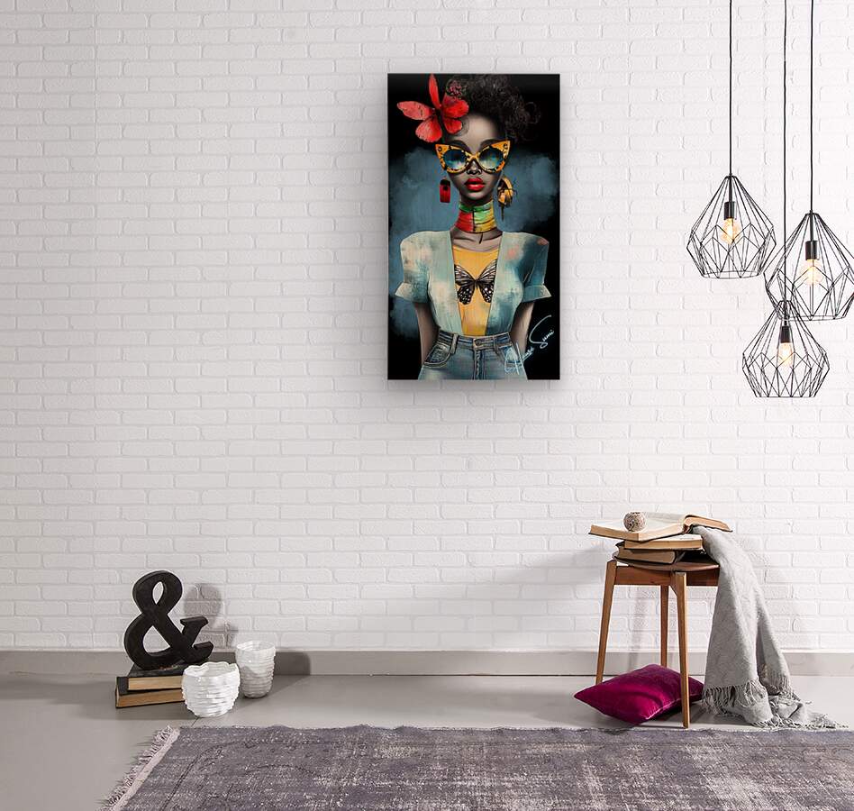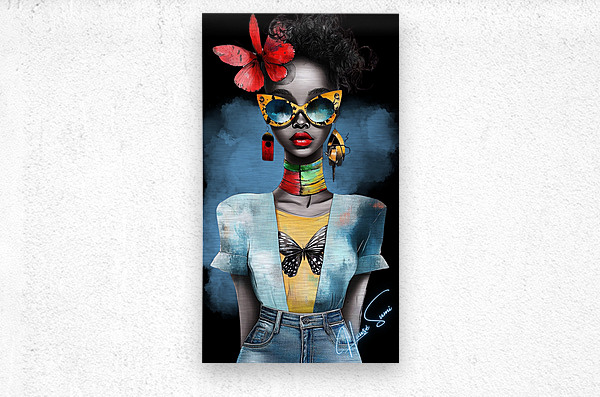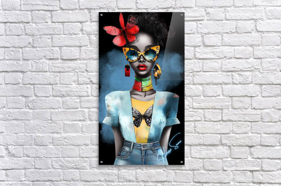 With a splash of crimson in her accessories, this fierce fashionista stands out in any crowd. Her butterfly motif speaks to her free spirit, while her vibrant red flower and high-fashion eyewear make a daring statement. Wrapped in a rainbow-colored choker, she shows her multifaceted identity in every layer of her style.