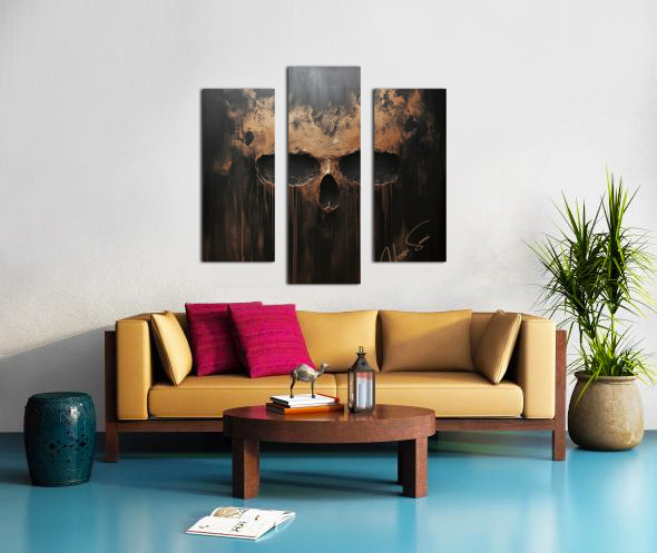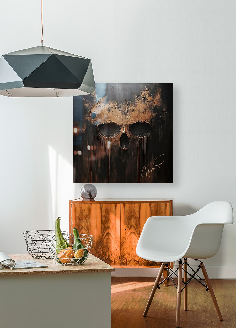 In the depths of an ancient, decaying crypt, the remnants of a forsaken civilization lay hidden beneath layers of ash and time. The image of the skull, emerging from the charred remains, is a haunting reminder of a curse long ago cast on a once-powerful kingdom. As the embers glow faintly from the walls, legends tell of a malevolent force trapped within the darkness, yearning to escape its fiery prison. The skull, both a symbol of death and eternal unrest, warns those who dare venture near of the eternal, unseen forces that still linger in the shadows.