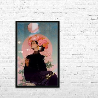 A celestial goddess bathed in soft pinks and gold, her presence radiates serenity and divine femininity. The floating moon mirrors her aura, as if she...[+]