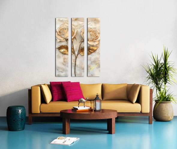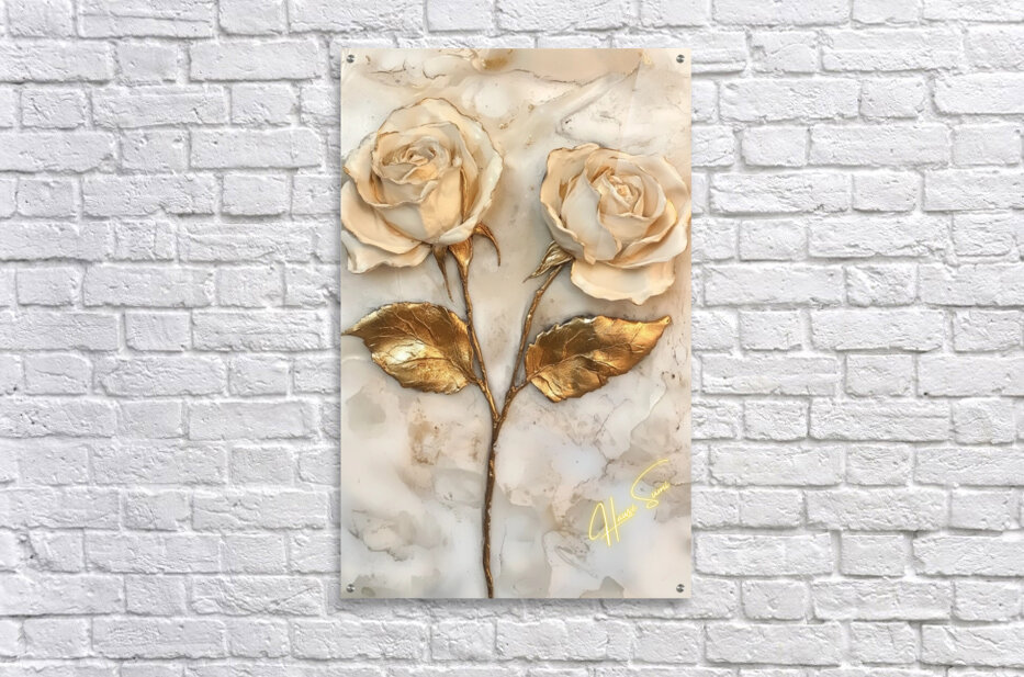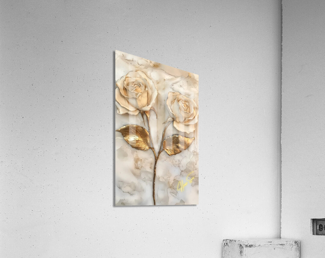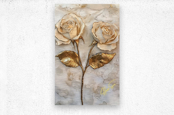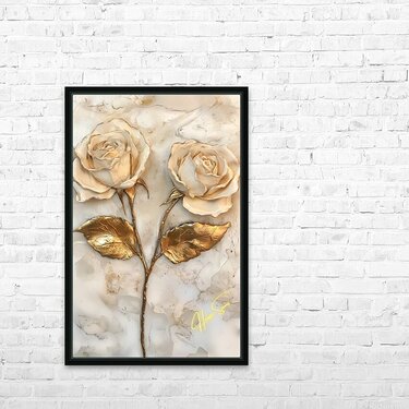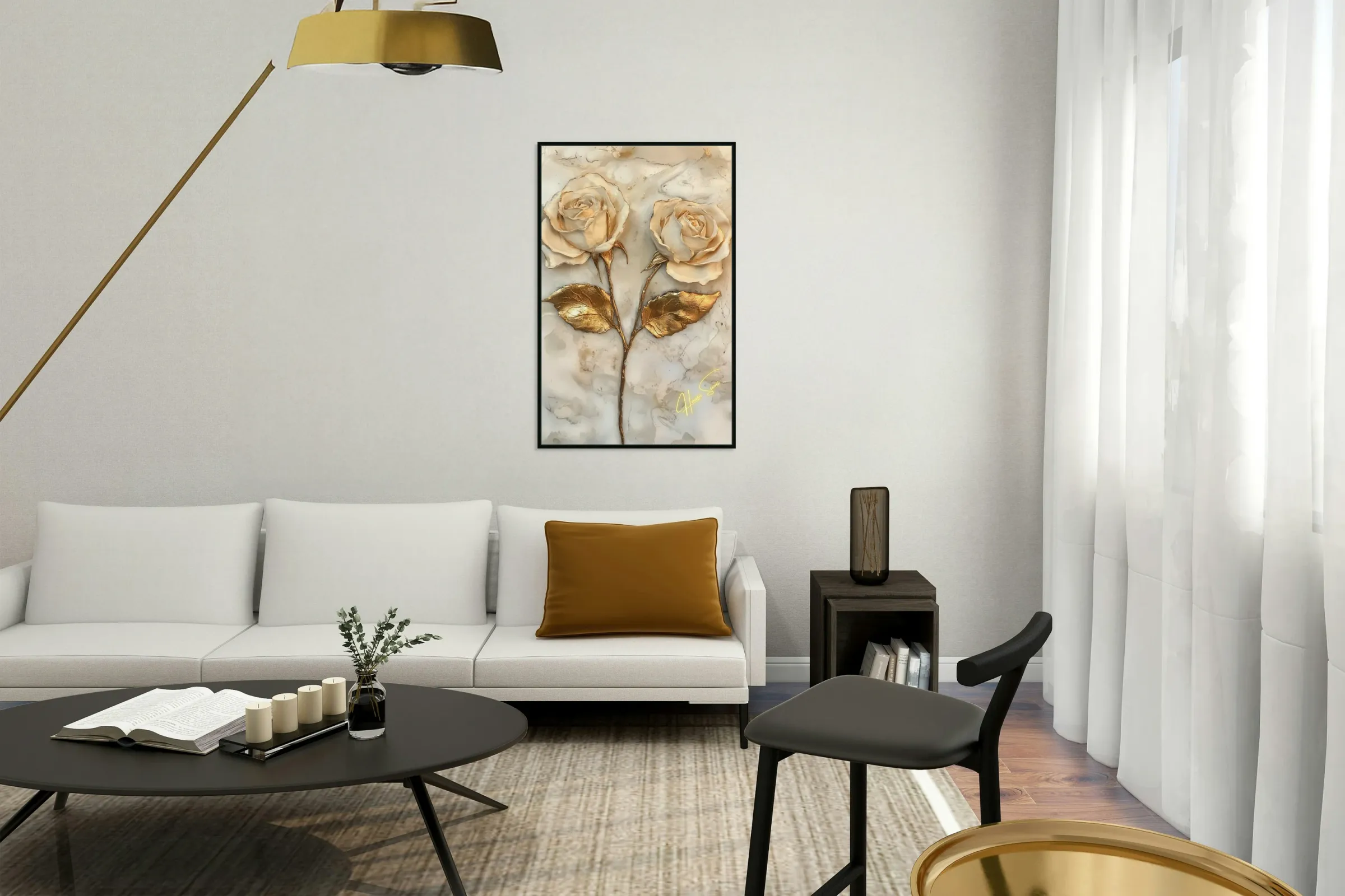 Two roses intertwined, their golden veins reflecting the unbreakable bond of love and loyalty. A minimalist yet powerful testament to the beauty of simplicity, where gold and ivory tell an eternal tale of connection.