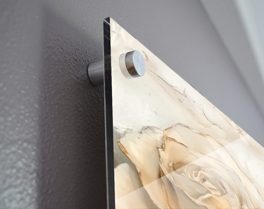 Printed to the edge - Ready to hang - provided with 4 premium polished aluminum stand off ( wall screws and mounting hardware provided )