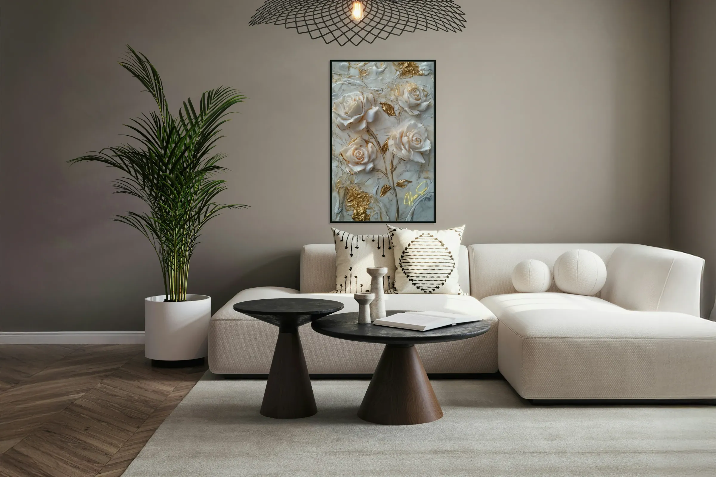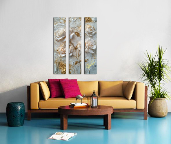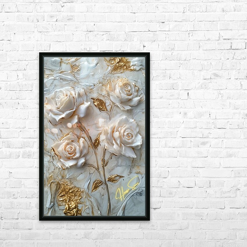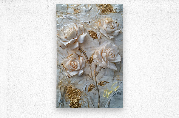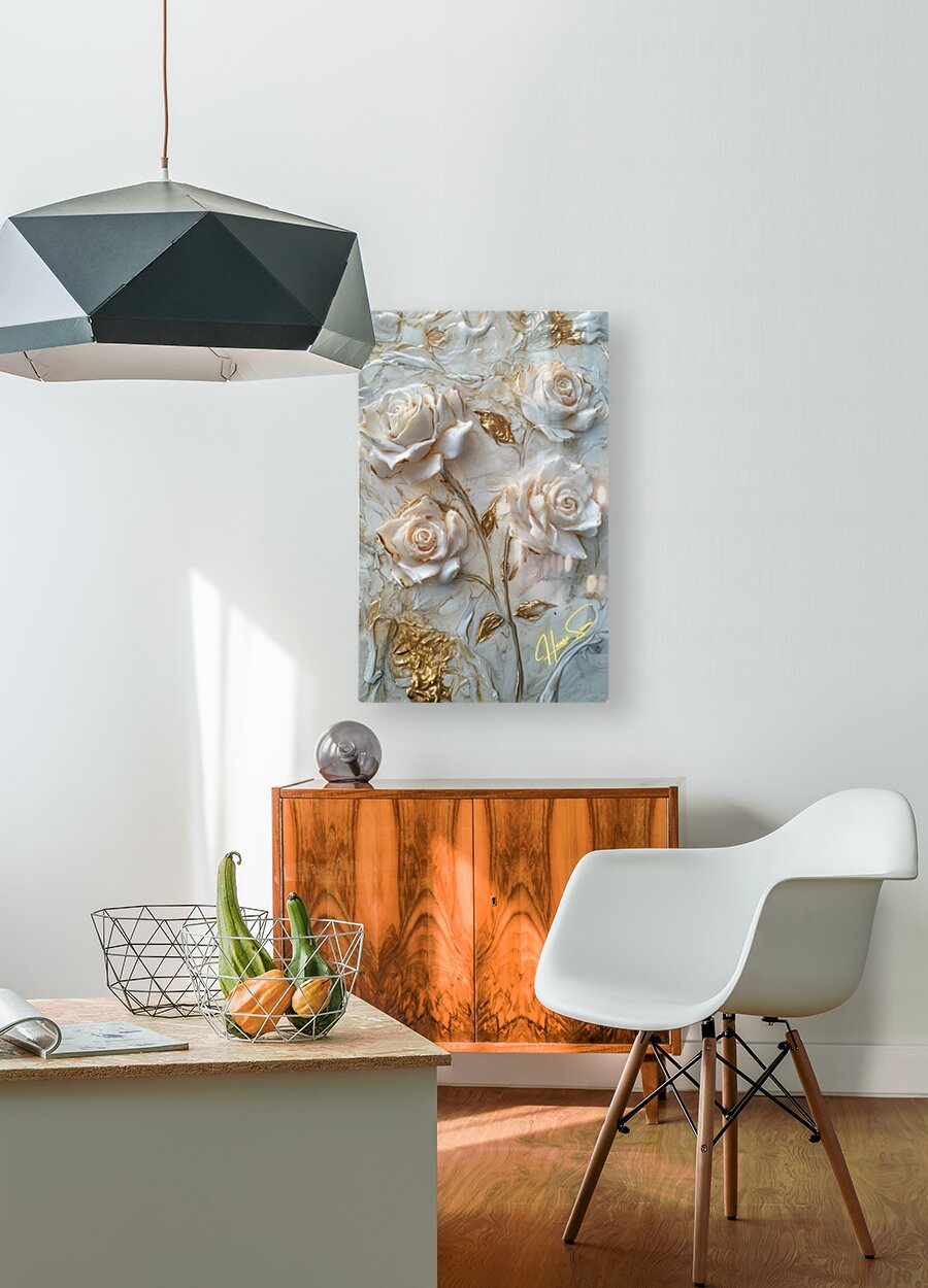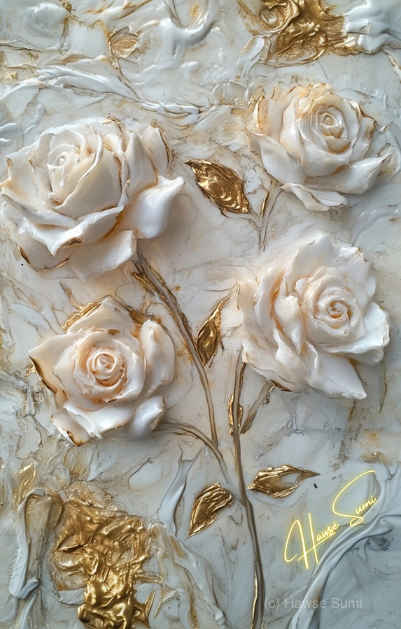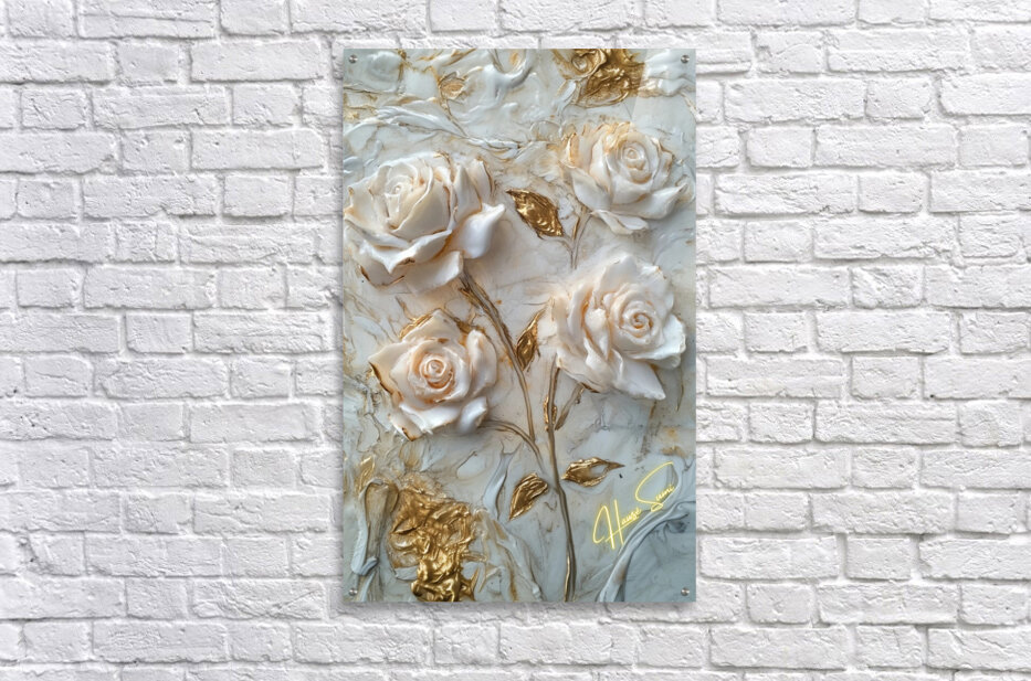 Roses sculpted in gold and ivory, standing resilient amidst swirls of marble and whispers of time. Each petal, an embodiment of strength wrapped in de...[+]