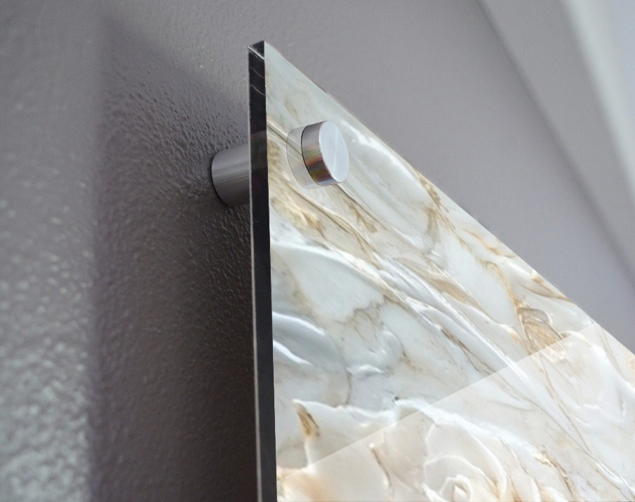 Printed to the edge - Ready to hang - provided with 4 premium polished aluminum stand off ( wall screws and mounting hardware provided )