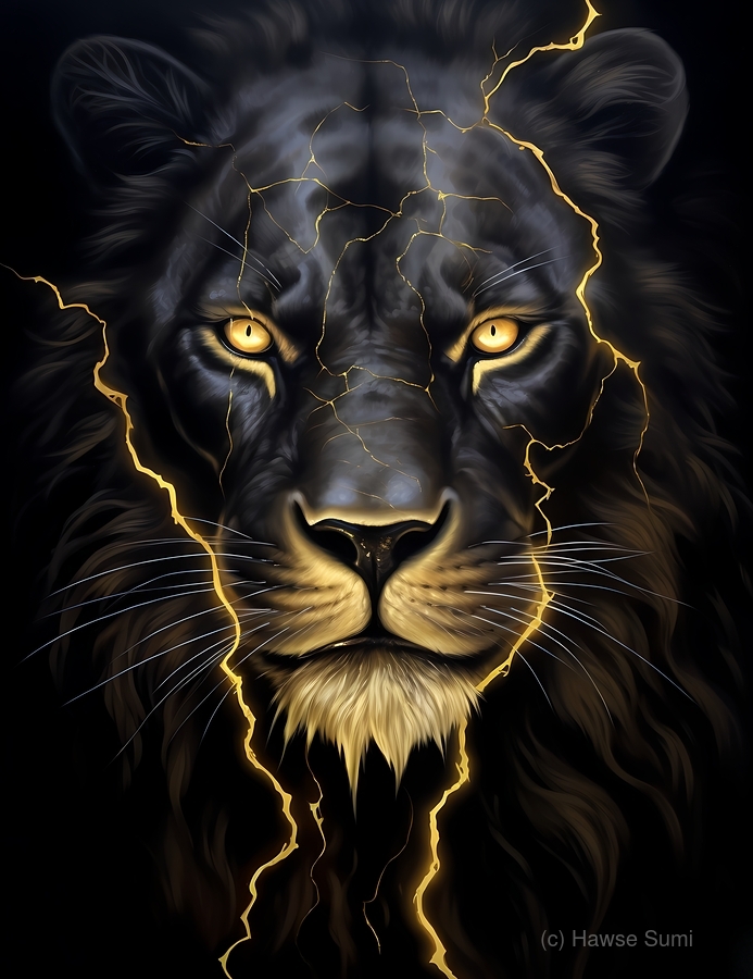 lightning lion painting