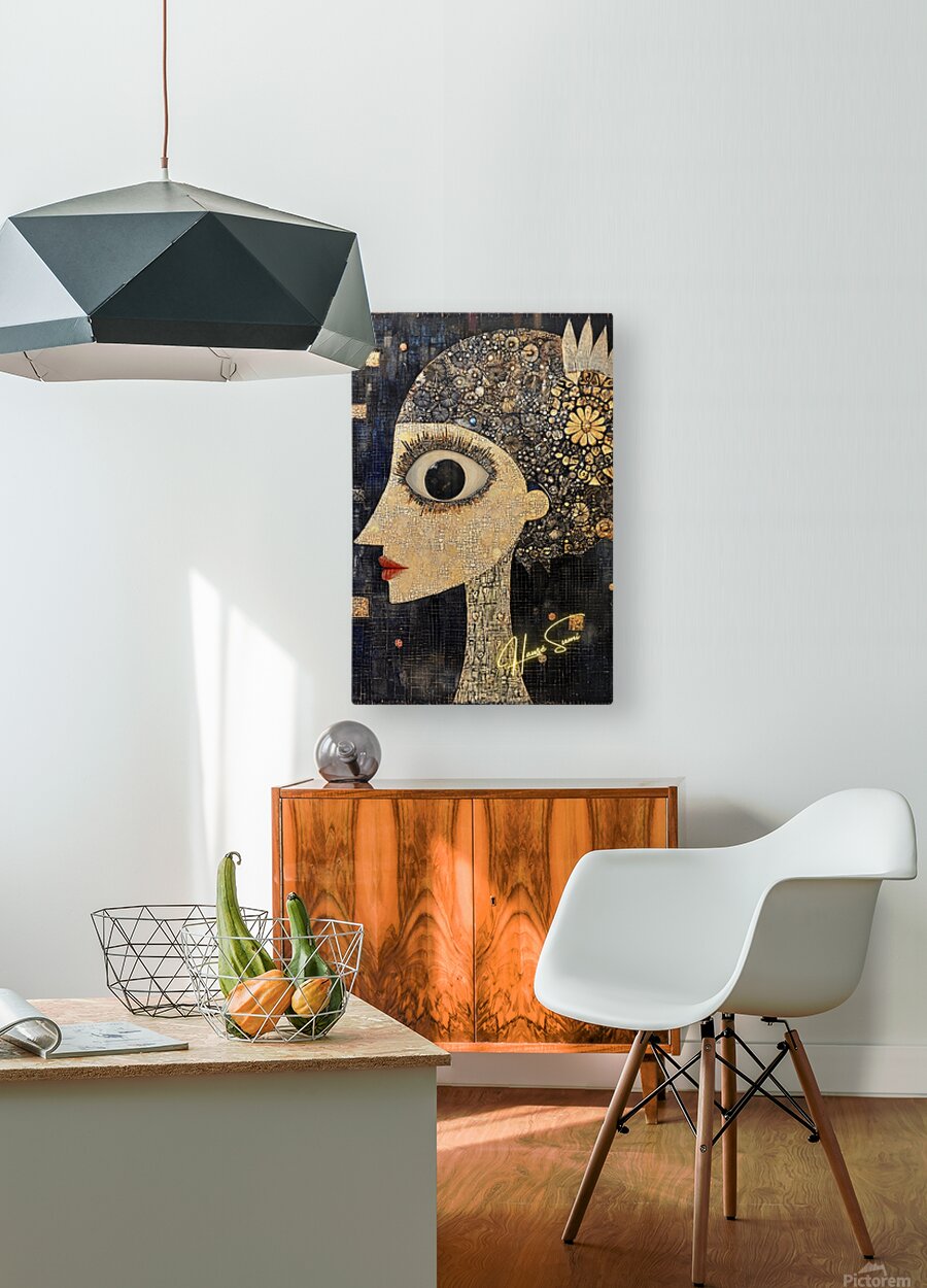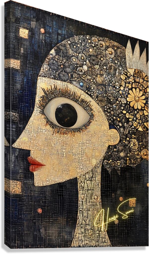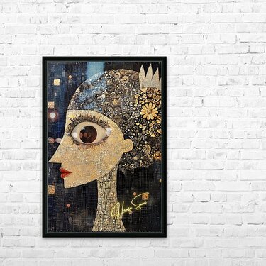 With a single cosmic eye and a head adorned with golden daisies and astral bursts, she gazes into the mysteries of the universe. Her skin, like cracke...[+]