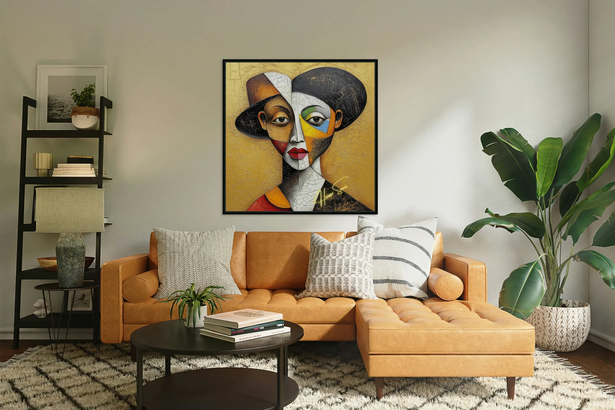 This Cubist-inspired portrait tells two stories in one face—a metaphor for duality in strength and softness, tradition and rebellion. With each bold...[+]