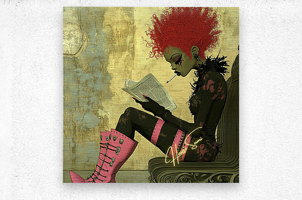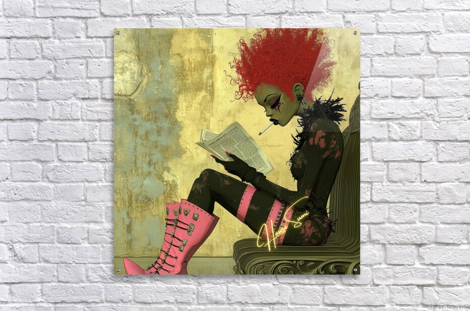 A rebellious reader in pink latex and spiked heels breaks every expectation. She’s fierce, focused, and unapologetically herself—cigarette lit, ey...[+]