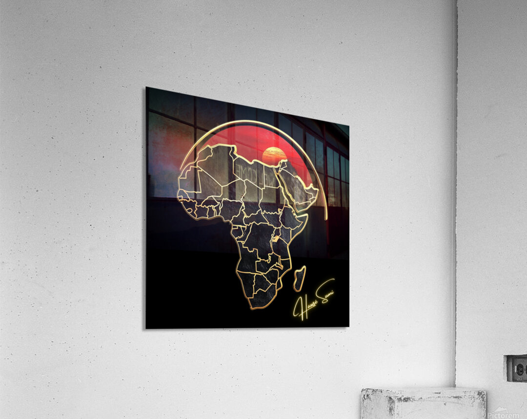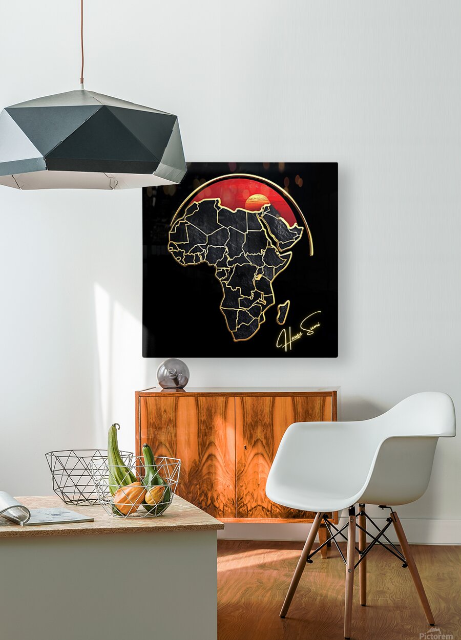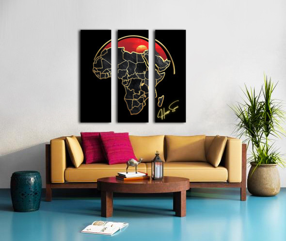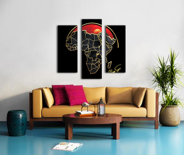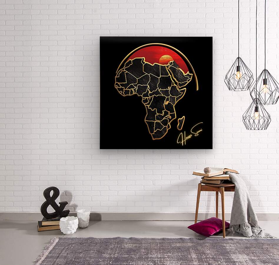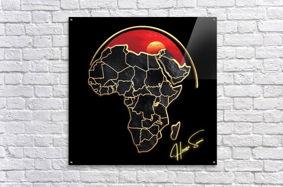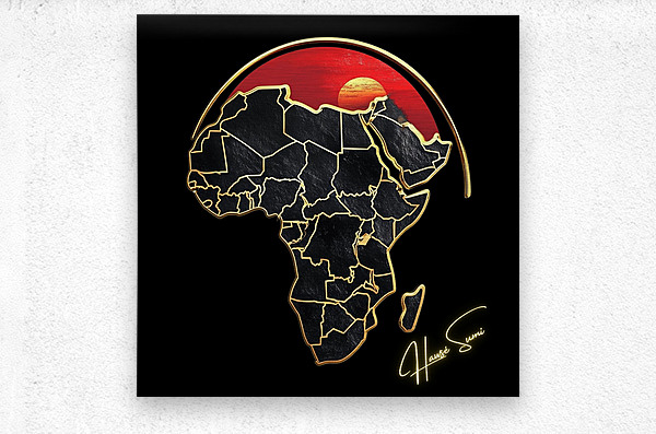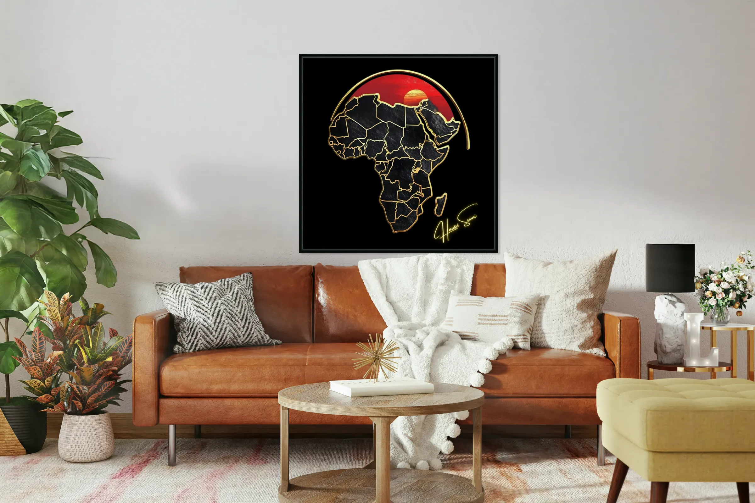 A golden Africa outlined in precision, crowned by a blazing red sun fading into dusk. This piece symbolizes the rebirth of the continent’s narrative...[+]