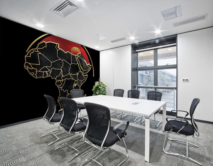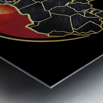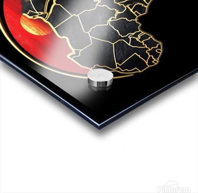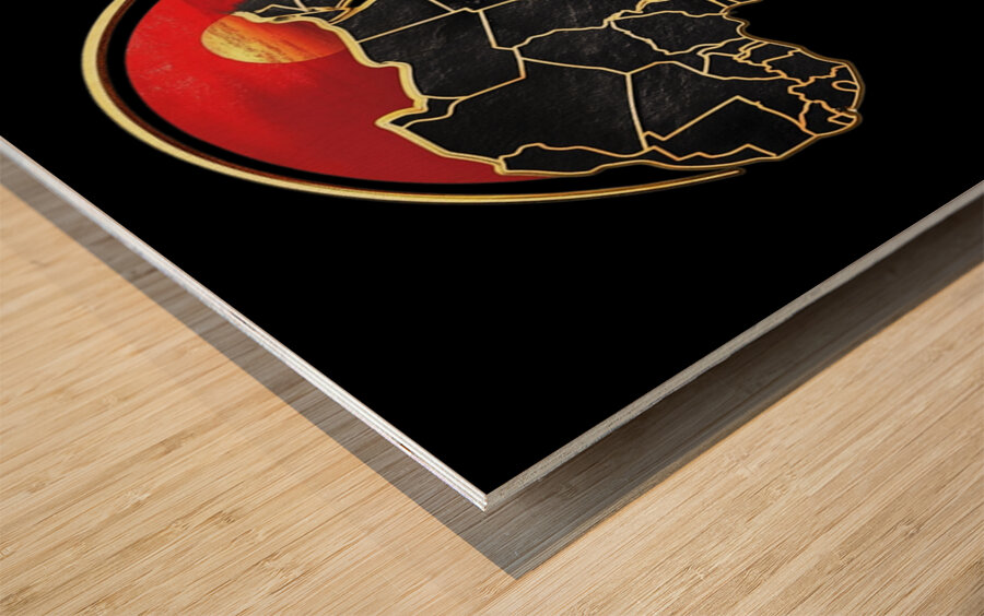 A golden Africa outlined in precision, crowned by a blazing red sun fading into dusk. This piece symbolizes the rebirth of the continent’s narrative—power, pride, and perspective rising on the horizon of Black legacy.