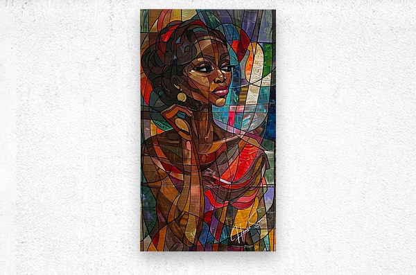 003 – "Echoes in Amber" Nia’s gaze is distant—piercing the unseen, wrapped in a cascade of warm amber, ruby, and violet tones. Her expression captures the weight and wonder of what’s been survived and what’s still to bloom.