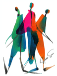 Three figures move forward in fluid unison, their translucent forms merging and separating like shifting thoughts. Each hue marks a different emotiona...[+]