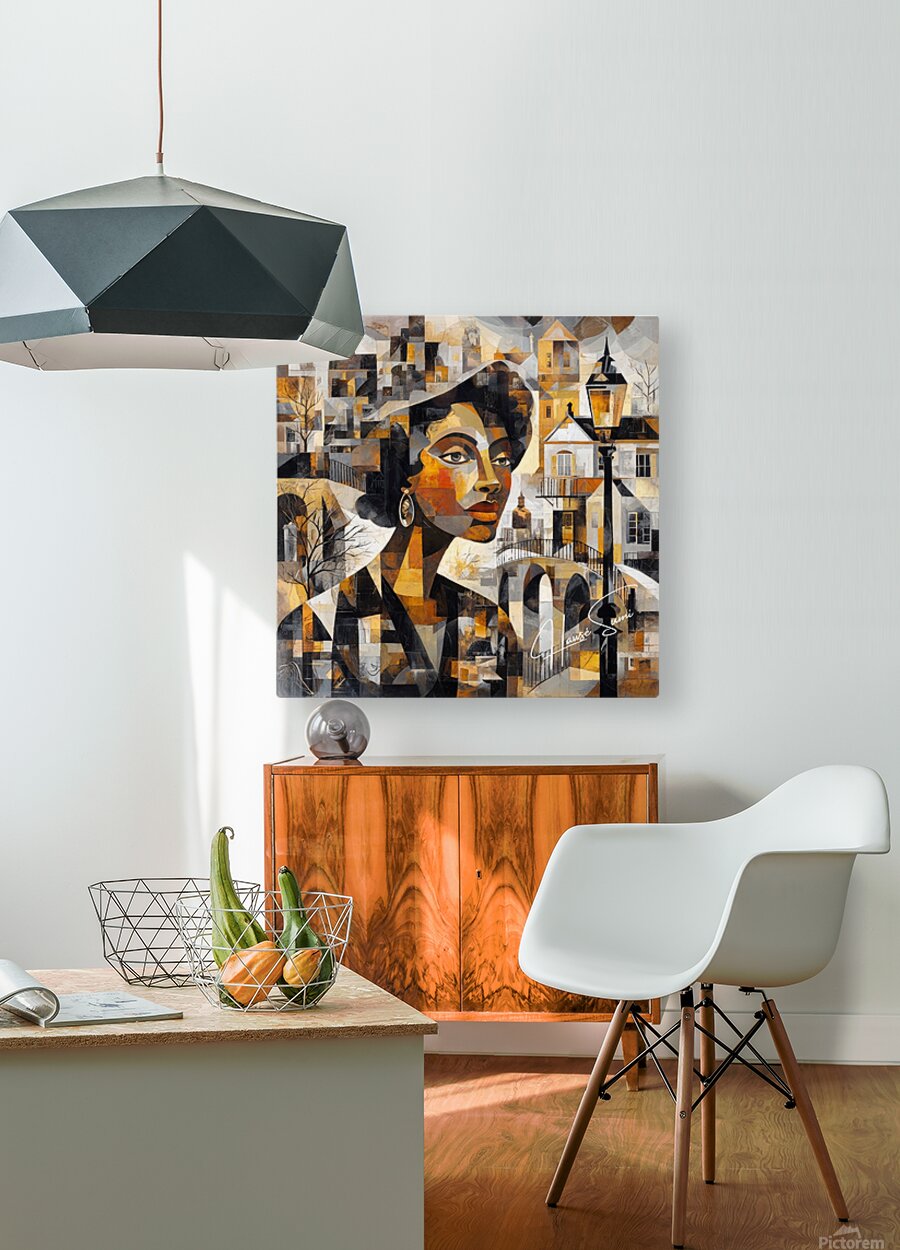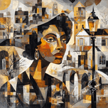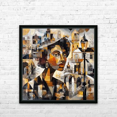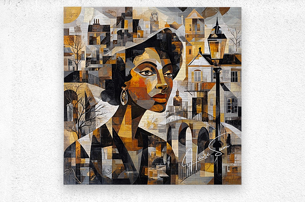 She stands between eras—the bridge behind her both literal and symbolic. The architecture carries whispers of memory, while her expression holds the unbroken thread of identity. Past and present converge in amber tones of persistence.