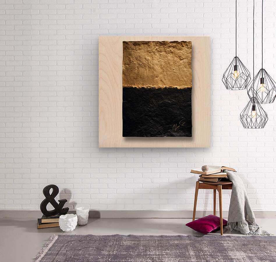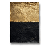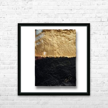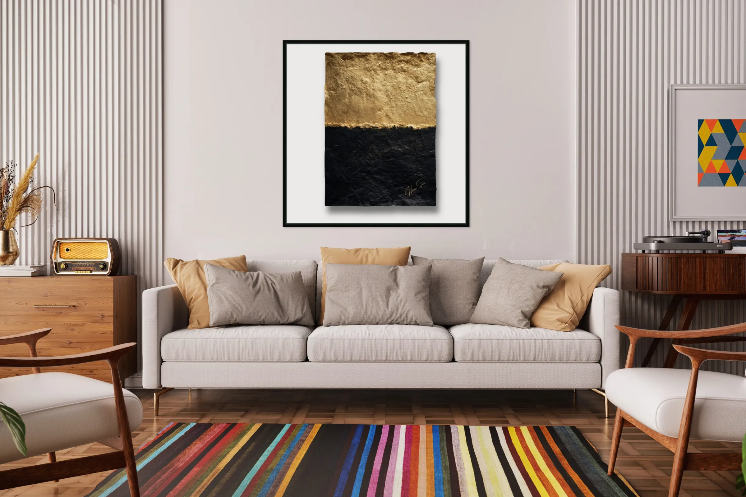 Gilded Divide is a study in contrast, restraint, and presence. The piece balances a luminous field of gold against a deep, grounding expanse of black, creating a clean horizon line that feels both raw and deliberate. Its heavily textured surface gives it a sculptural quality, allowing the light to catch across the gold in a way that shifts throughout the day. The result is minimal without feeling empty, bold without trying too hard. This work sits in the space between modern luxury and quiet tension. It carries an architectural calm, but the uneven finish and organic texture keep it from feeling sterile. The black anchors the composition with weight and depth, while the gold lifts it with warmth, richness, and a sense of elevation. It is a piece built for interiors that need presence, not noise.