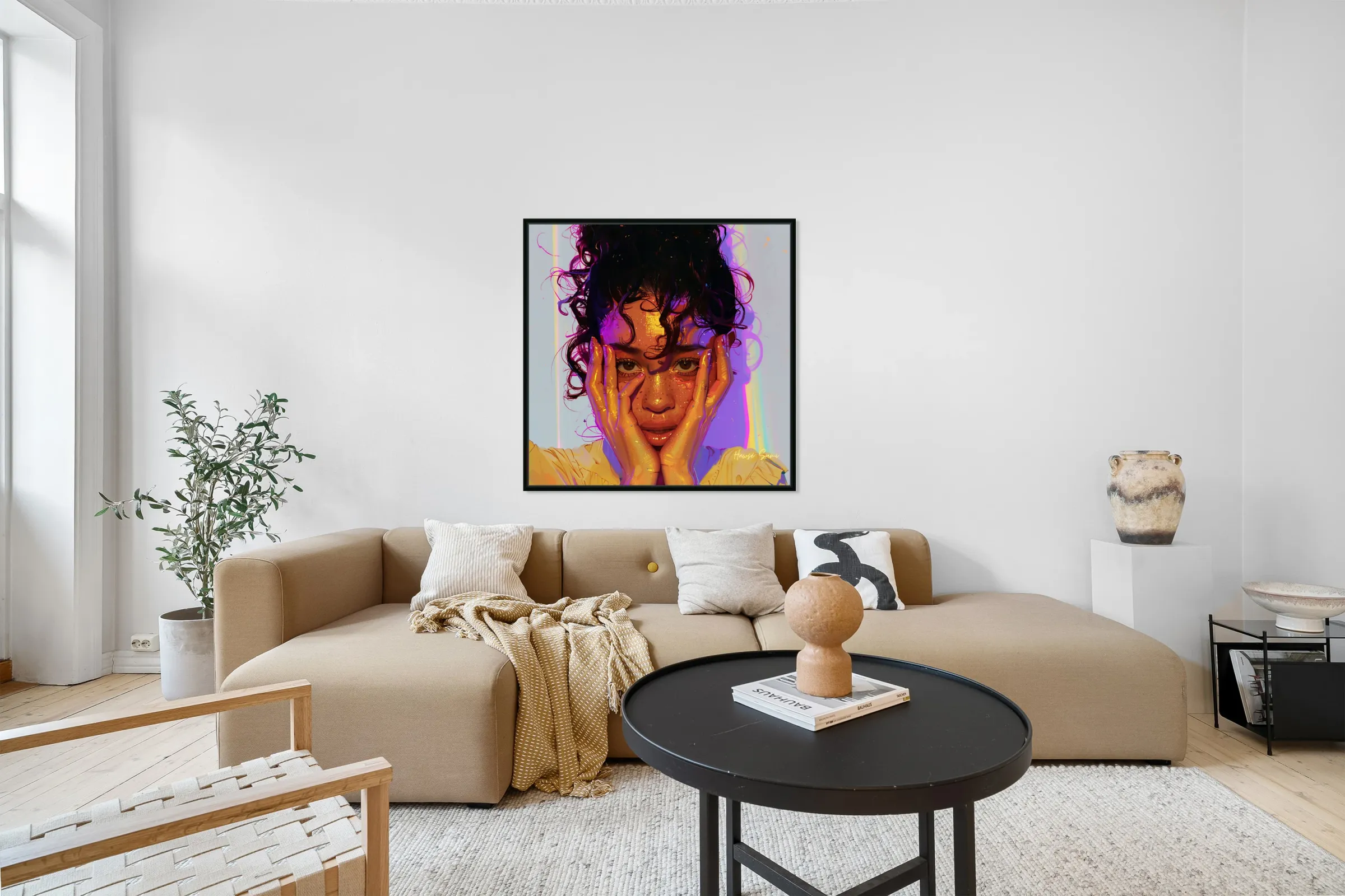 Imprimé jusqu’au bord et prêt à être accroché, avec un cadre flottant à l’arrière.