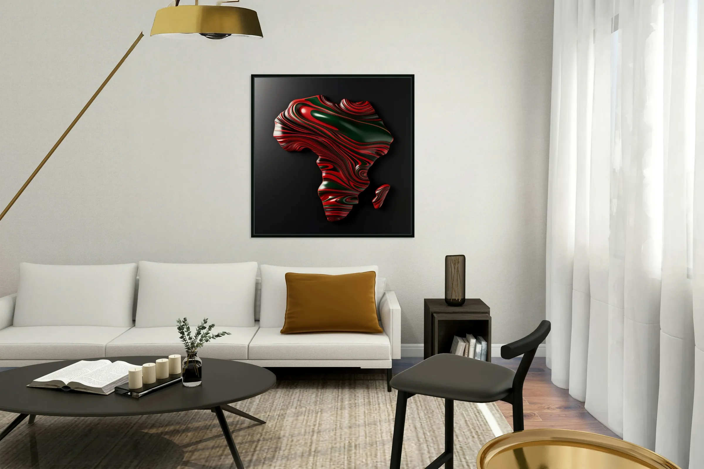 "Mother Africa - II" continues the homage to African heritage with its glossy, undulating lines. The artwork reflects the dynamic and ever-changing nature of the continent, capturing its essence through bold colors and fluid shapes. It stands as a testament to the enduring spirit of Africa.