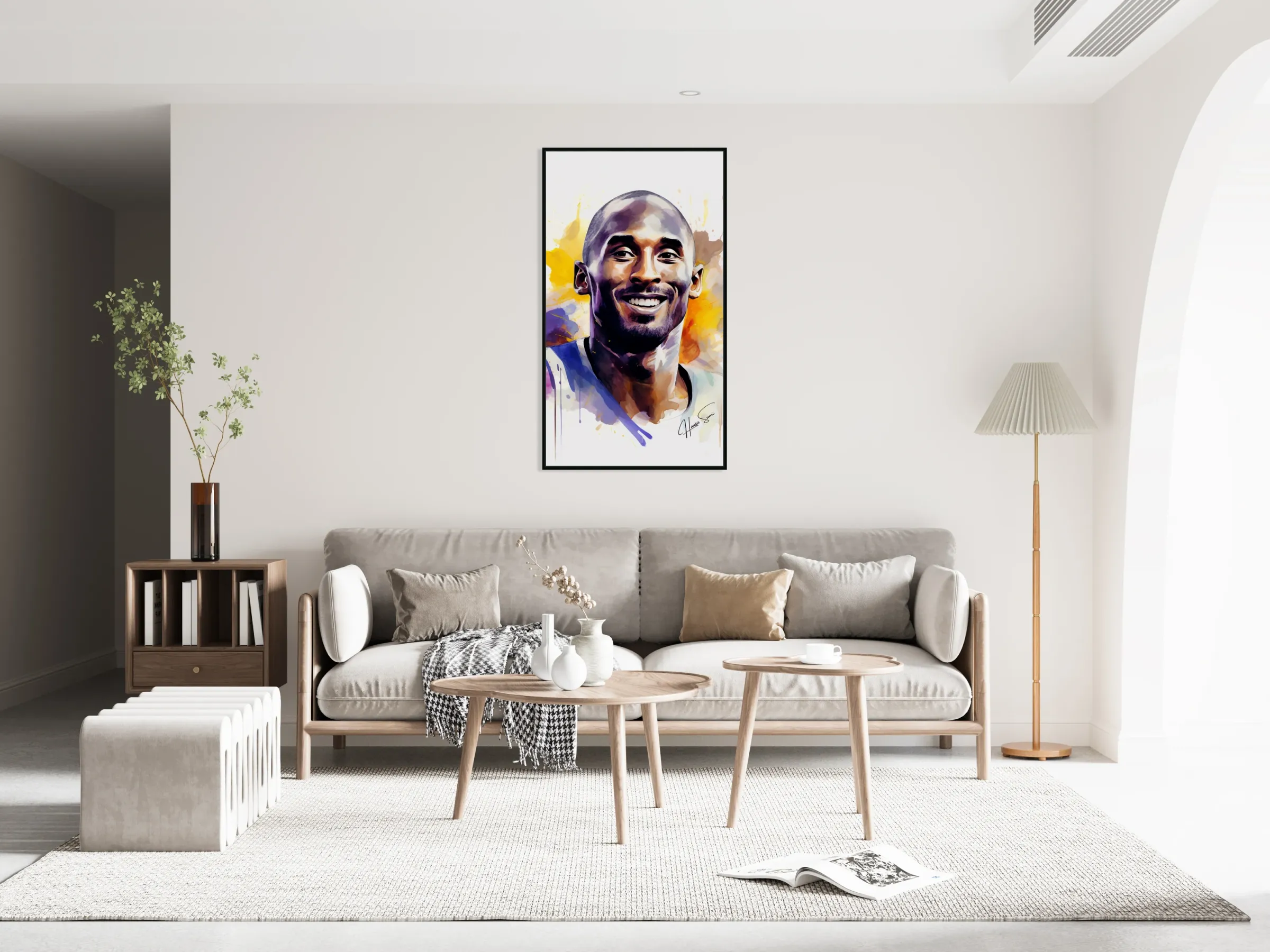 A monochrome piece showing Kobe Bryant looking upwards, embodying his aspirations and the heights he reached throughout his life. The smoky background adds an ethereal quality to his enduring legacy. Rest in peace.