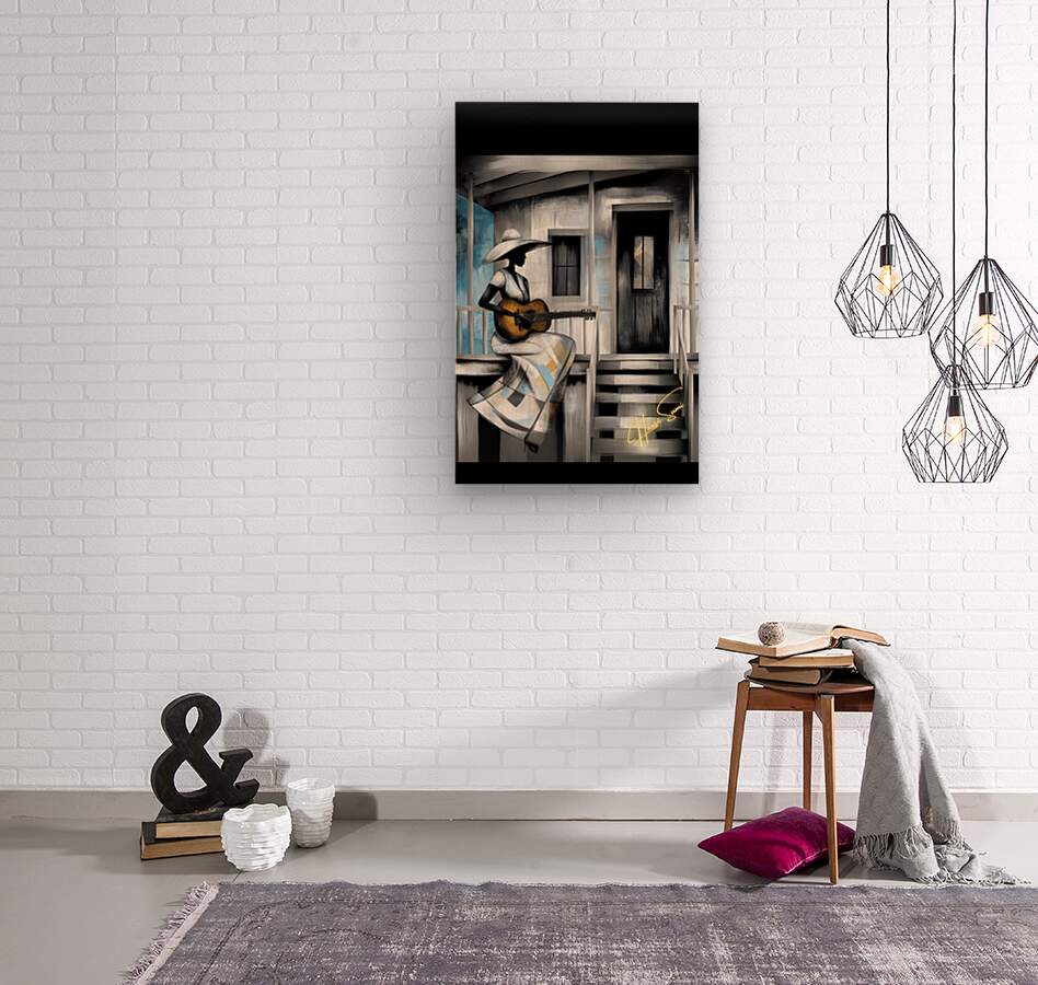 A woman sits on the steps of her weathered home, her guitar a companion to her thoughts. The blue and gray tones speak of nostalgia, resilience, and the silent strength of a storyteller. Each note she plays carries generations of voices that once lived in this very space.